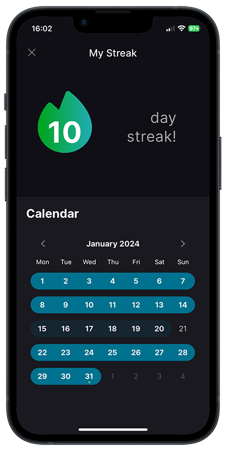 Our calendar view brings your dedication to life, showcasing your check-ins across each habit. It provides a clear, visual representation of your hard work, allowing you to see at a glance the days you've conquered and the habits that have become part of your routine.